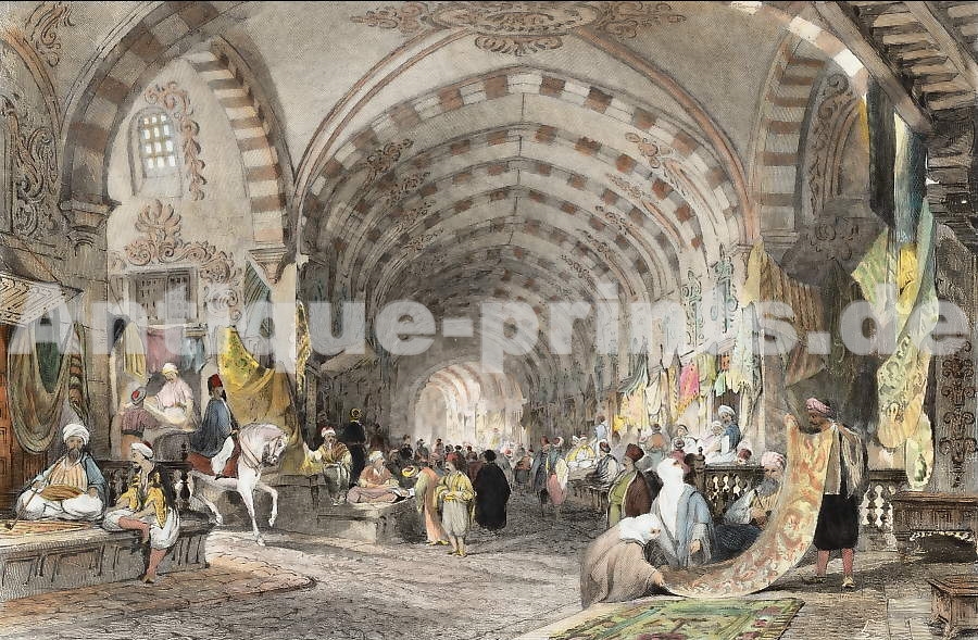 Turkey. Original steel engraving drawn by W. Brockedon, from a sketch by F. J. V. Arundell, engraved by E. Finden. 1835. Good condition. Hand-coloured. 145x10,5cm. Matted.