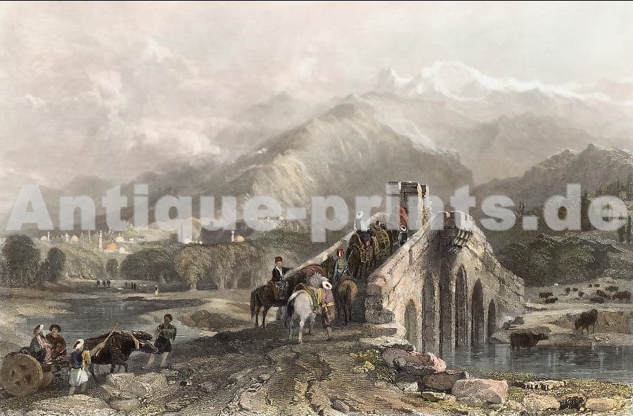 Türkei. Stahlstich von W. M. Topham nach W. H. Bartlett. 1838. Guter Zustand. Handkoloriert. 18,5x12,5cm. Mit Passepartout.