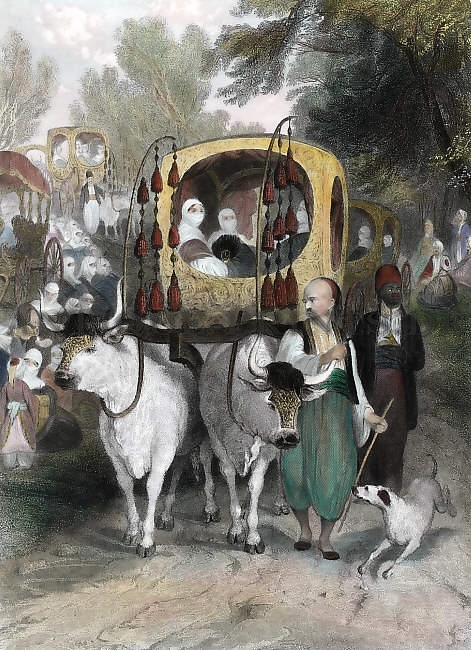 Turkey. Original steel engraving drawn by W. H. Bartlett, engraved by C. K. Richardson. 1838. Good condition. Hand-coloured. 18,5x12cm. Matted.