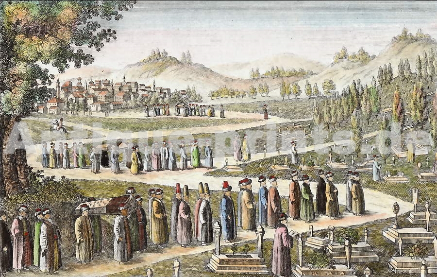 China. Stahlstich von G. Paterson nach T. Allom. 1843. Leichte Verschmutzung in der linke untere Ecke. Handkoloriert. 19,5x12,5cm. Mit Passepartout.