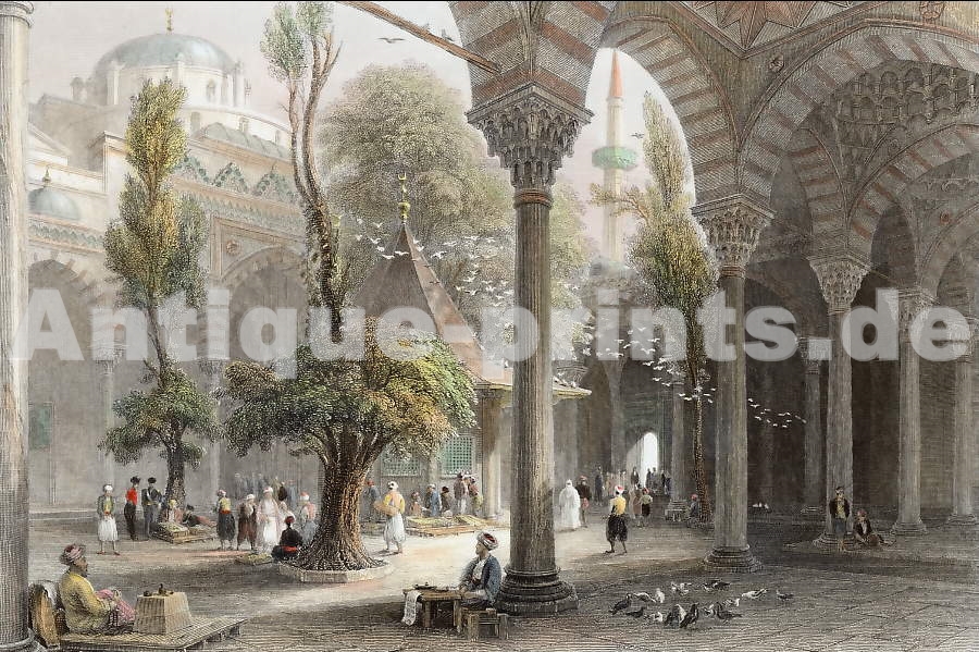 Holy Land. Original tinted lithograph. 1887. Very good condition. Hand-coloured. 11,5x7,5cm. Matted.