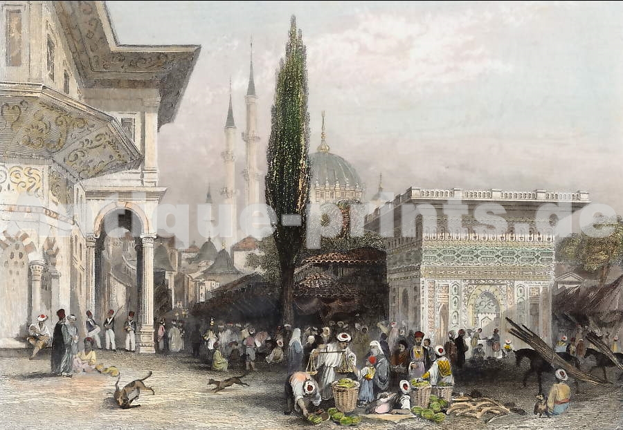 India. Original steel engraving, engraved by Finden after H. Warren. 1839. Very good condition. Hand-coloured. 14x10cm. Matted.