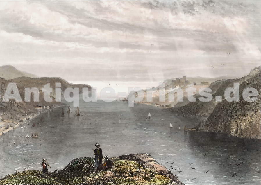 Turkey. Original steel engraving drawn by W. H. Bartlett, engraved by W. Hill. 1837. Good condition. Hand-coloured. 19x12,5cm. Matted.
