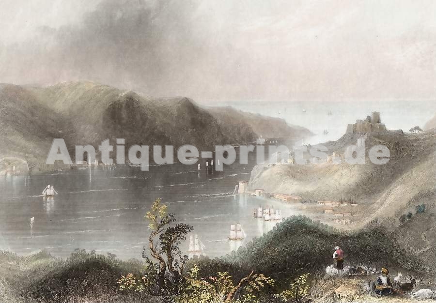 Turquie. Gravure sur acier, gravée par H. Adlard d´après W. H. Bartlett. 1843. Bon état. Aquarellée à la main. 19x12,5cm. Montée sous passe-partout.