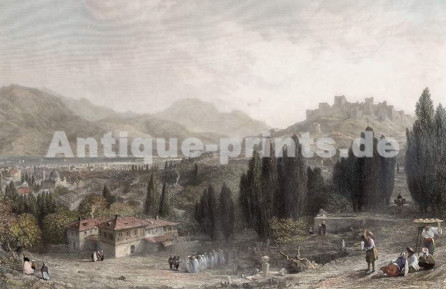 Turquie. Gravure sur acier, gravée par E. Benjamin d´après T. Allom. 1838. Très bon état. Aquarellée à la main. 19x12cm. Montée sous passe-partout.