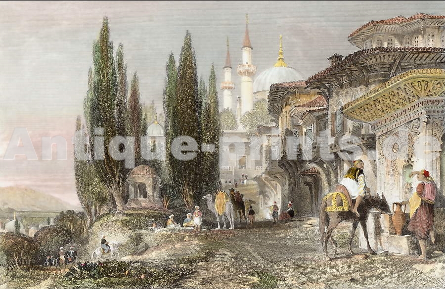 Grèce. Lithographie. 1858. Très bon état. Aquarellée à la main. 19x12cm. Montée sous passe-partout.