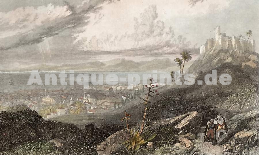 Portugal. Original steel engraving drawn by J. Holland, engraved by J. Cousen. 1838. Good condition. Hand-coloured. 14x9,5cm. Matted.