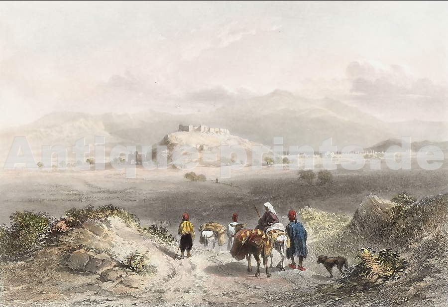 Greece. Original steel engraving drawn by C. Radclyffe, engraved by W. Radclyffe. 1839. Very good condition. Hand-coloured. 17,5x11,5cm. Matted.