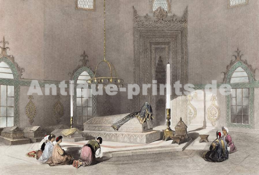 Grèce. Gravure sur cuivre. 1818. Légère tache à gauche. Aquarellage original. 9x6cm. Montée sous passe-partout.