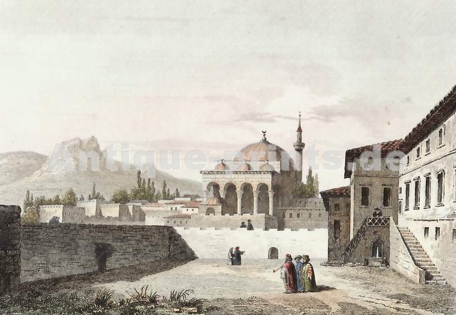 Turkey. Original steel engraving drawn by W. H. Bartlett, engraved by E. Brandard. ca 1840. Very good condition. Hand-coloured. 18,5x11,5cm. Matted.