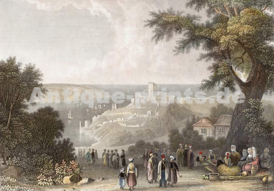 Grèce. Gravure sur acier, gravée par W. Floyd d´après W. H. Bartlett. 1841. Très bon état. Aquarellée à la main. 19x12,5cm. Montée sous passe-partout.