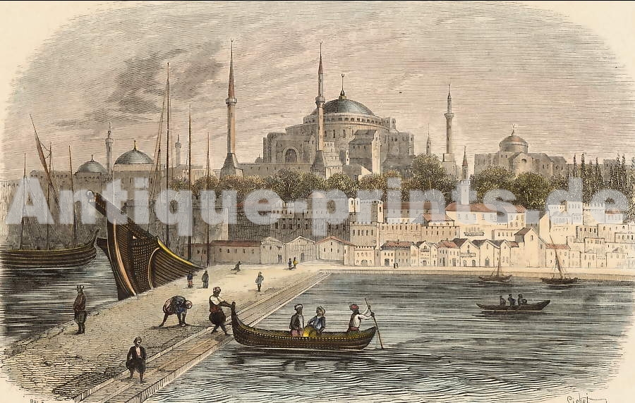 Grèce. Gravure sur acier, gravée par E. Finden d´après J. M. W. Turner. 1837. Très bon état. Aquarellée à la main. 13,5x9cm. Montée sous passe-partout.