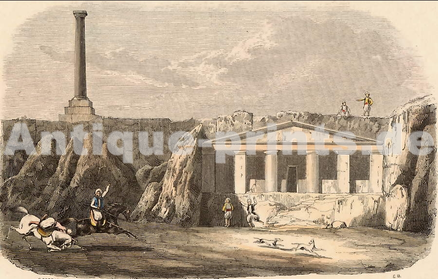 Greece. Original steel engraving drawn and engraved by J. Waightson. 1839. Very good condition. Hand-coloured. 17x12cm. Matted.