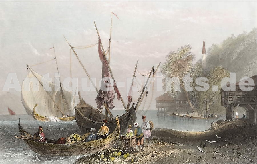 Turkei, Turquie, Gravure, Turkey, Stich, Engraving, Bosphore, Bosphorus, Bebec, Bebek