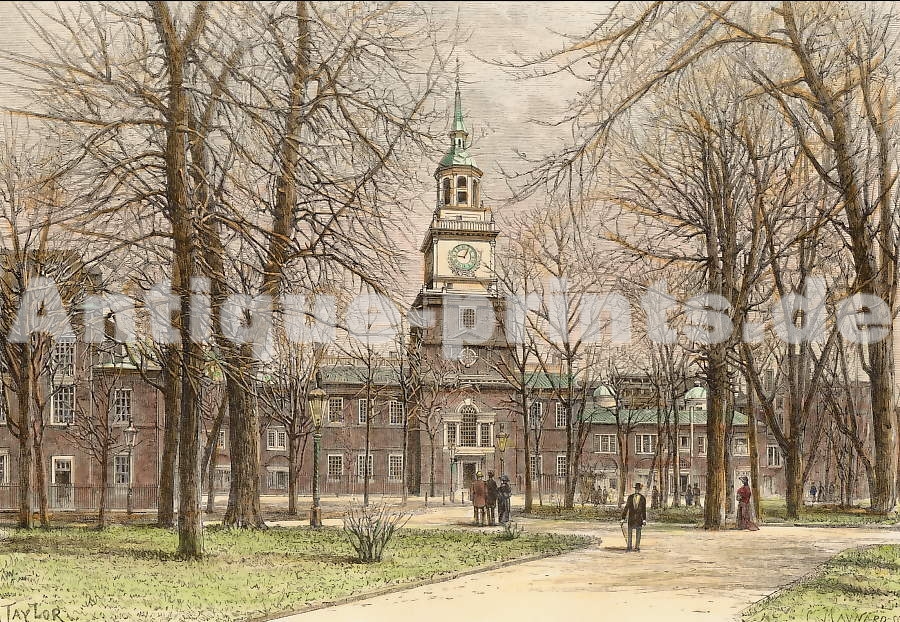 etats-unis, Gravure, Usa, Stich, Engraving, United-States, Philadelphie, Philadelphia, Independence Hall
