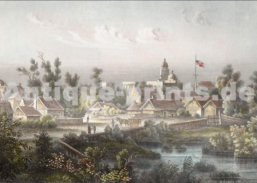 Vereinigte Staaten. Stahlstich von T. Heawood nach Richardt. ca 1850. Sehr guter Zustand. Handkoloriert. 22x14,5cm. Mit Passepartout.