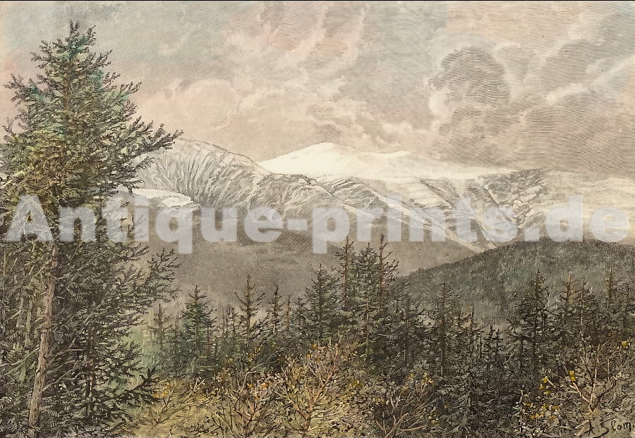 Vereinigten Staaten. Holzstich gezeichnet von Thérond. 1892. Leicht stockfleckig in den Rändern. Handkoloriert. 19x13cm. Mit Passepartout.