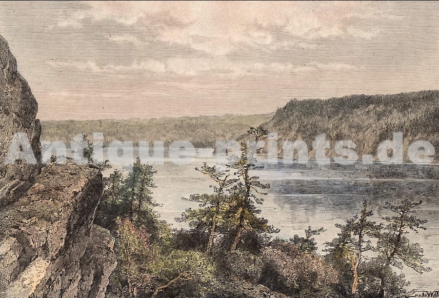 Vereinigten Staaten. Holzstich von Maynard nach Taylor. 1892. Stockfleckig in den Rändern. Handkoloriert. 18,5x12,5cm. Mit Passepartout.