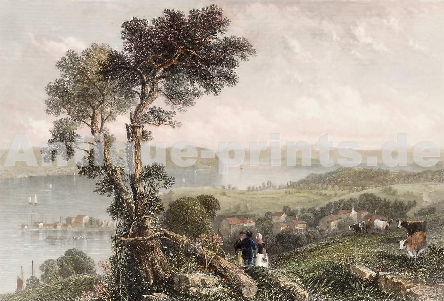 Pompeii. Original copper engraving, engraved by Cepparoli after N. Vanni. 1765. Very good condition. Printed on the reverse side. Hand-coloured (watercolour and gouache). 22x10,5cm. Matted.