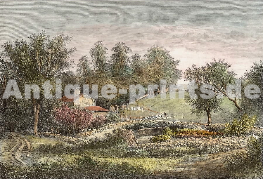 Allemagne. Lithographie. 1838. Très bon état. Aquarellée à la main. 11,5x9cm. Montée sous passe-partout.