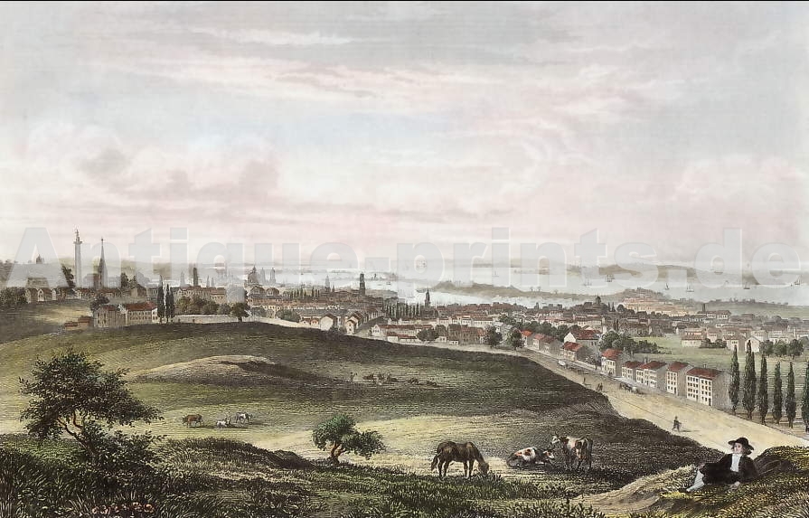 Varia. Original steel engraving engraved by W. French after J. Raoux. ca 1850. Light foxing in the right margin. Decorative border. Hand-coloured. 15,5x12,5cm. Matted.