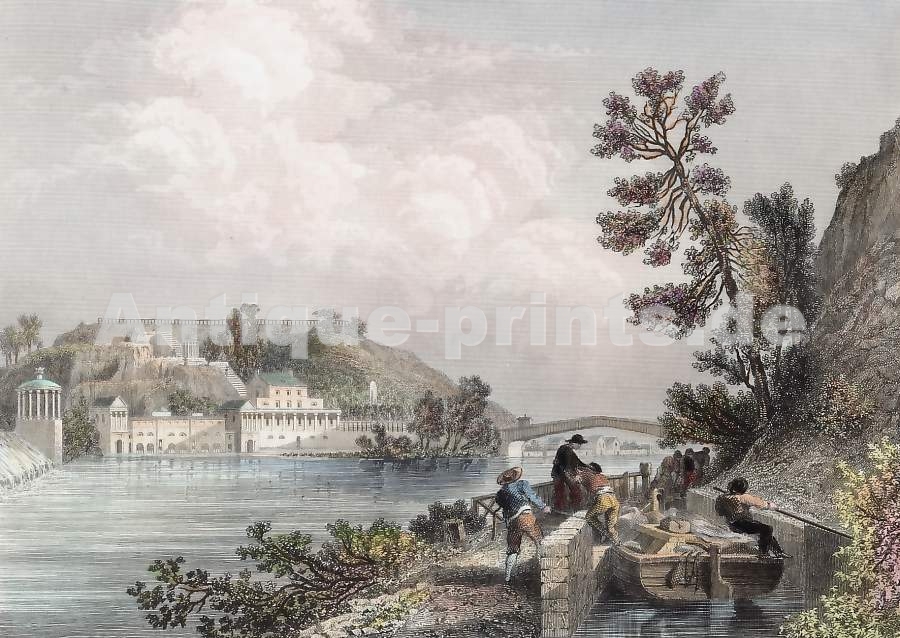 Ancient Rome. Original steel engraving, engraved by Manceau after G. Guillon-Lethière. 1853. Very good condition. Hand-coloured. 16,5x9,5cm. Matted.