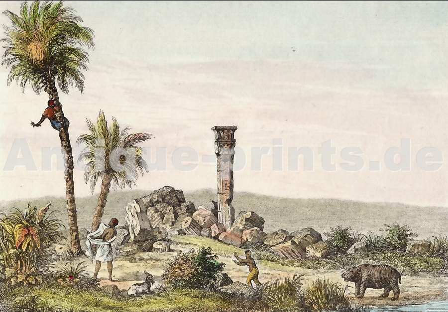 Varia. Original copper engraving, engraved by C. Nolli after L. Vanvitelli. 1762. Very good condition. Hand-coloured. 5,5x5,5cm. Matted.