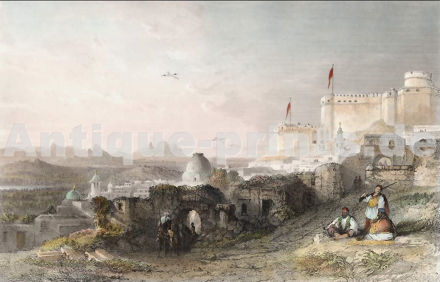 Tunisie. Gravure sur acier, gravée par E. Benjamin d´après T. Allom. 1840. Très bon état. Aquarellée à la main. 17,5x12cm. Montée sous passe-partout.