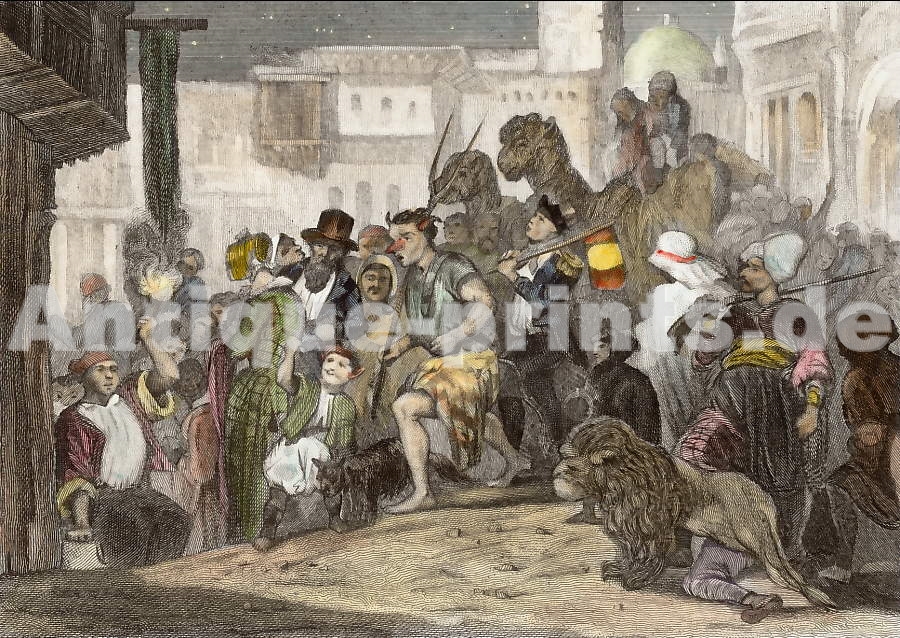 Tunisie. Gravure sur bois, gravée par E. Bocquet d´après E. Breton. 1846. Très bon état. Aquarellée à la main. 15,5x10cm. Montée sous passe-partout.