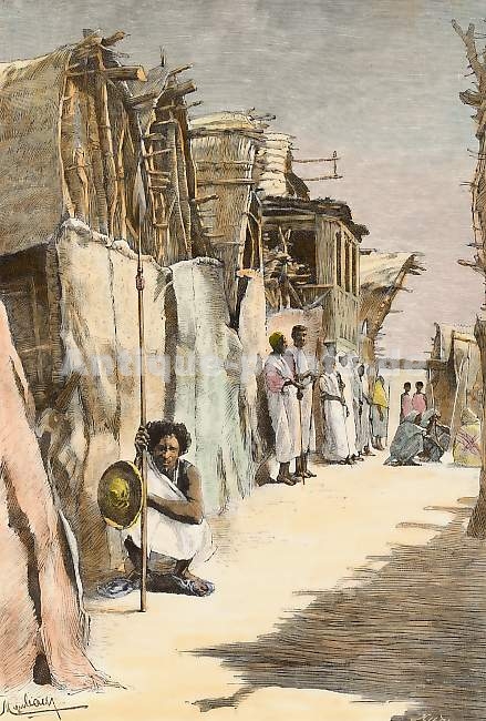 Somalia. Holzstich von Hildibrand nach Myrbach. 1887. Sehr guter Zustand. Handkoloriert. 19x13cm. Mit Passepartout.