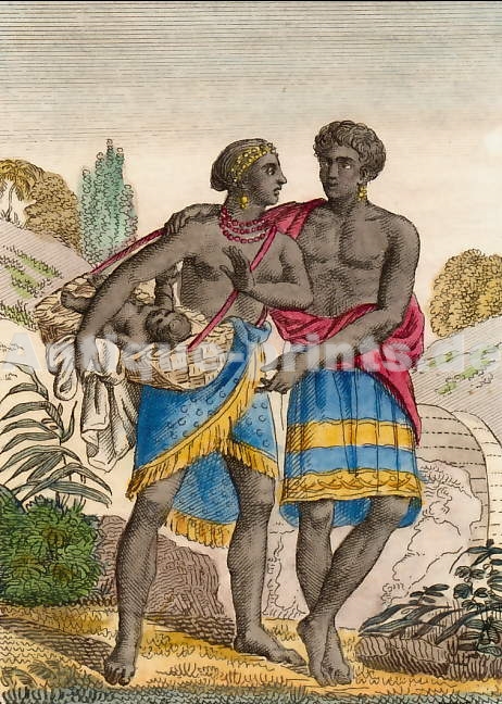 Borneo. Original steel engraving by Rouargue. ca 1870. Good condition. Original hand-colouring. 16,5x12cm. Matted.