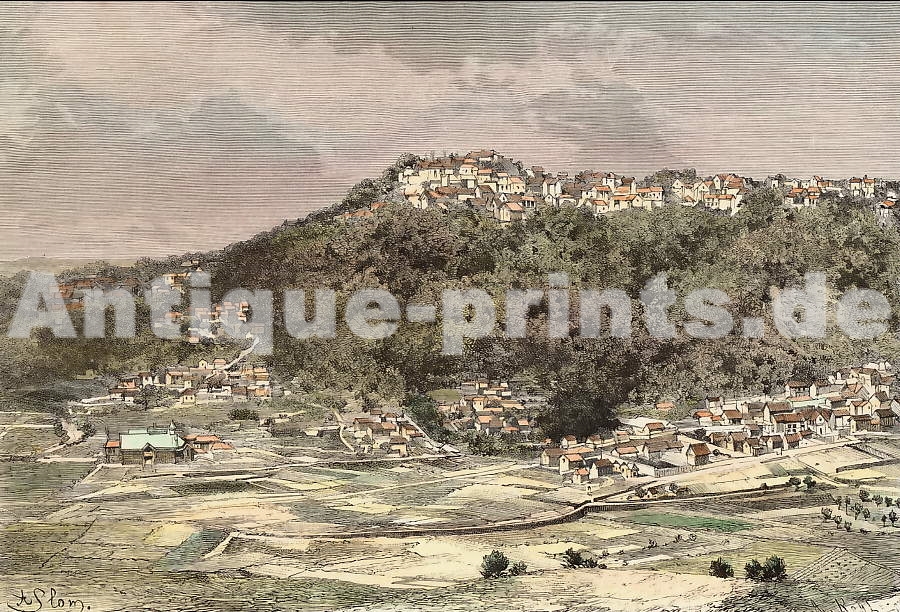 France. Original lithograph. 1859. Good condition. Original hand-colouring. 19x15cm. Matted.