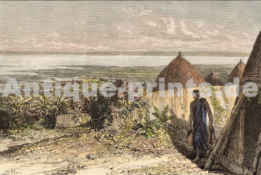 Bhutan. Original wood engraving drawn by Ronjat, engraved by Bertrand. 1889. Light foxing in the margins. Hand-coloured. 18,5x12,5cm. Matted.