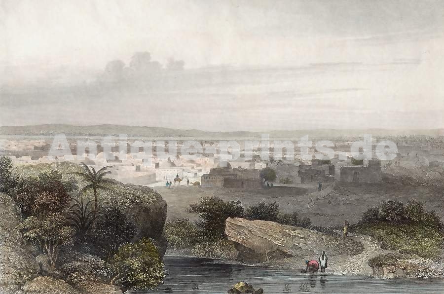 Germany. Original multi-view engraving on steel. Decorative border. 1853. Very good condition. Hand-coloured. 18,5x14cm. Matted.
