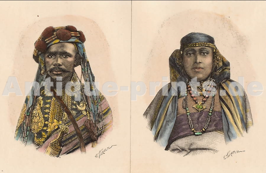 Orientalism. Original steel engraving drawn by H. Wyatt, engraved by H. Robinson. 1833. Good condition. Hand-coloured. 10,5x 8,5cm. Matted.