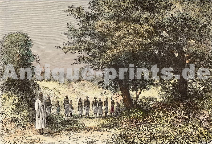 Île de la Réunion. Gravure sur bois, gravée par A. Kohl d´après T. Taylor. 1878. Légères rousseurs dans les marges. Aquarellée à la main. 18,5x13cm. Montée sous passe-partout.