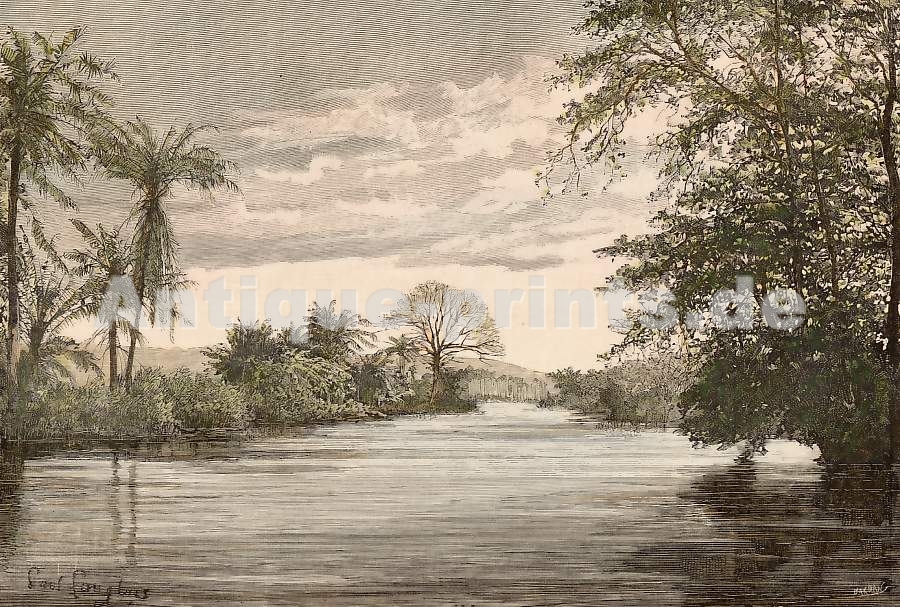 Perse. Gravure sur bois, dessinée par E. Breton. 1846. Bon état. Aquarellée à la main. 15,5x9,5cm. Montée sous passe-partout.