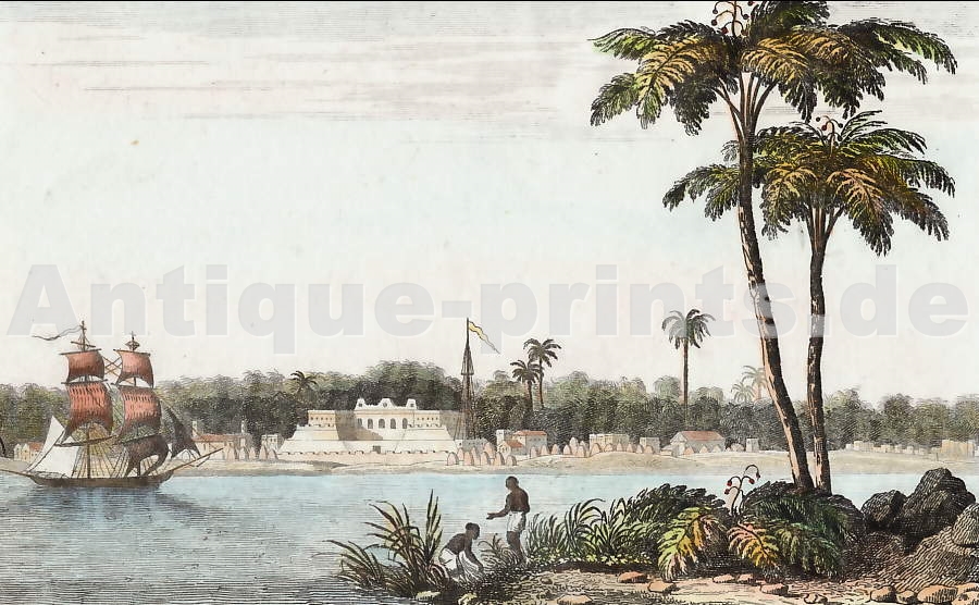 Libéria. Gravure sur bois, gravée par Bertrand d´après A. Slom. 1887. Très bon état. Aquarellée à la main. 19x13cm. Montée sous passe-partout.