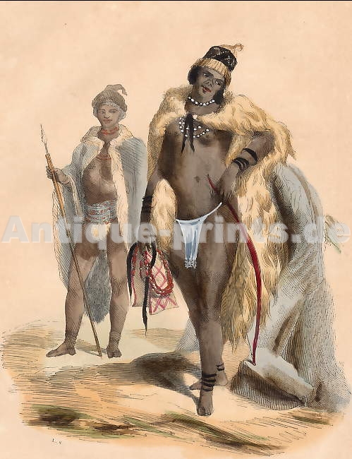 Afrique du Sud. Gravure sur bois, gravée par A. Kohl d´après T. Taylor. 1888. Légères rousseurs dans la marge inférieure. Aquarellée à la main. 19x13cm. Montée sous passe-partout.