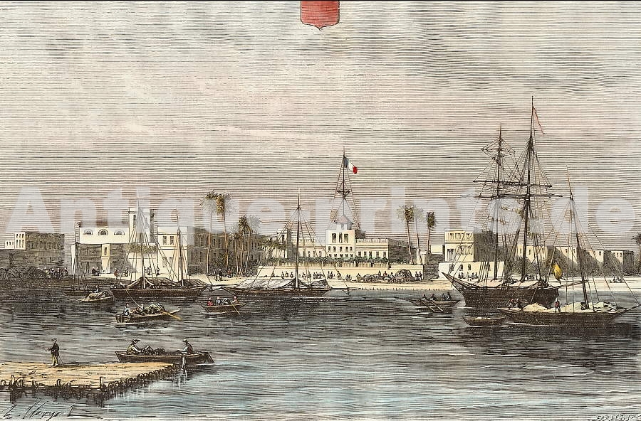 Mozambique. Gravure sur acier. 1853. Très bon état. Aquarellée à la main. 20x14cm. Montée sous passe-partout.