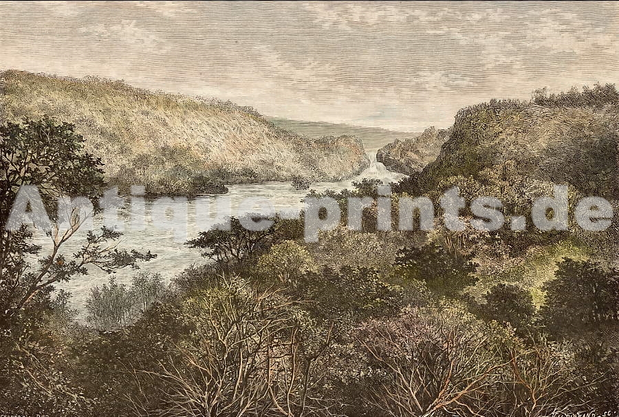 Ile de la Réunion. Gravure sur bois, gravée par C. Bertrand d´après T. Taylor. 1883. Très bon état. Aquarellée à la main. 19x13cm. Montée sous passe-partout.