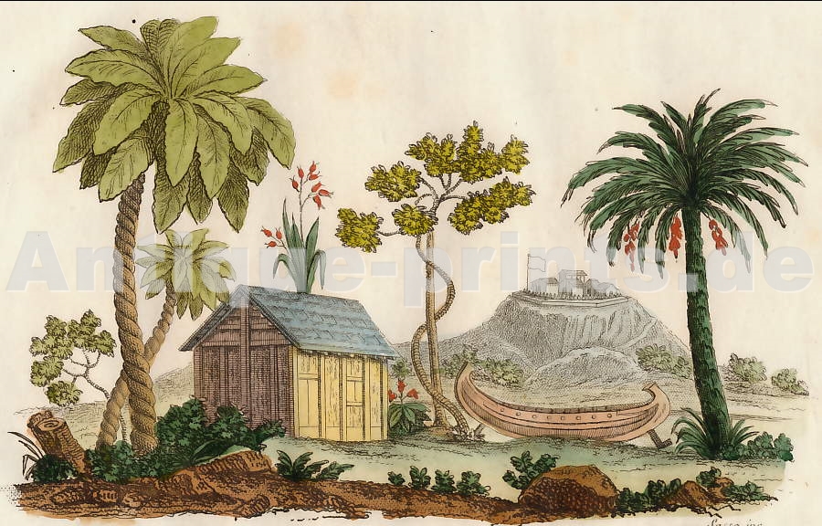 Madagascar. Gravure sur bois, gravée par Hildibrand d´après A. Slom. 1889. Bon état. Aquarellée à la main. 19x13cm. Montée sous passe-partout.