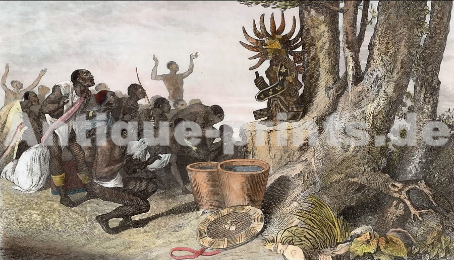 Botswana. Gravure sur bois, gravée par A. Kohl d´après A. Slom. 1889. Légères rousseurs dans les marges. Aquarellée à la main. 19x13cm. Montée sous passe-partout.