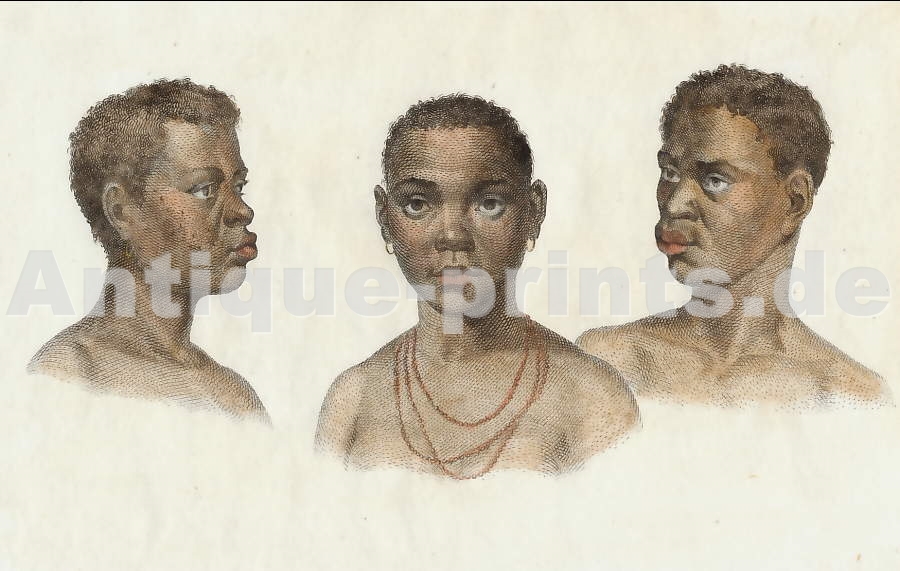 Ethiopia. Original steel engraving drawn by A. W. Callcott, after a sketch by C. Barry, engraved by E. Finden. 1834. Very good condition. Hand-colouring. 13,5x10cm. Matted.