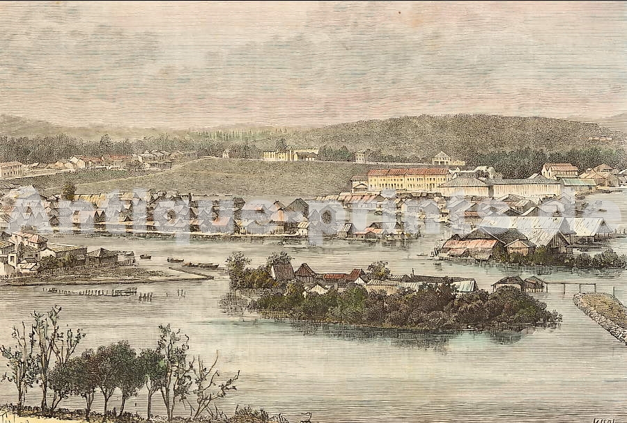 Nigéria. Gravure sur bois, gravée par H. Thiriat. 1887. Très bon état. Aquarellée à la main. 19x13cm. Montée sous passe-partout.