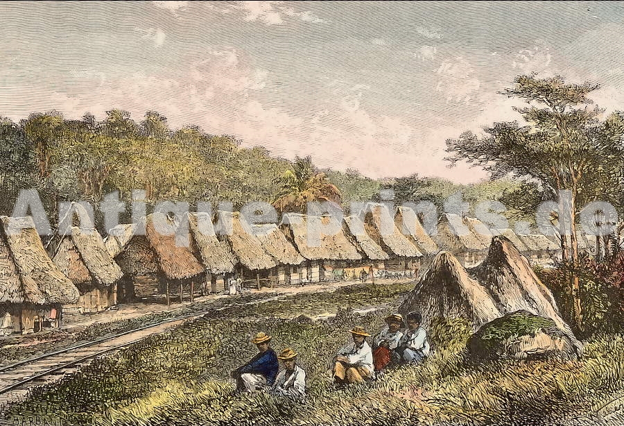 Guinée-Bissau. Gravure sur bois, gravée par C. Barbant d´après P. Langlois. 1887. Légères rousseurs dans les marges. Aquarellée à la main. 19x13cm. Montée sous passe-partout.