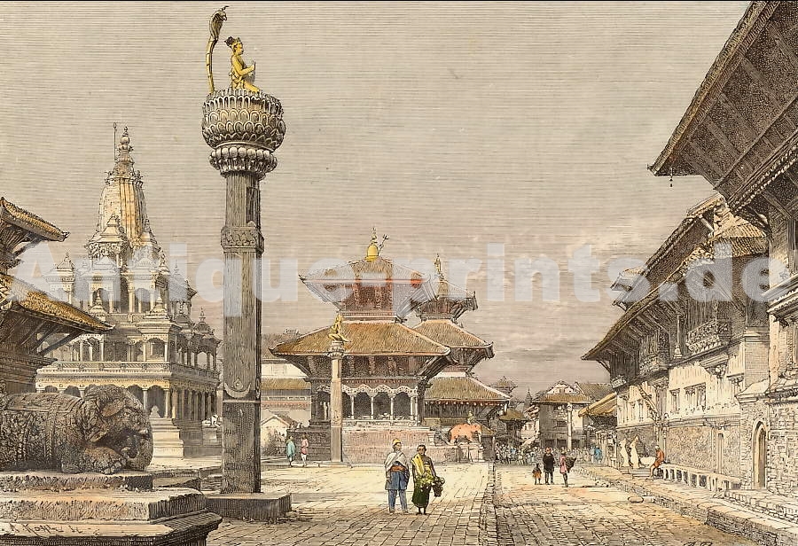Afrique du Sud. Gravure sur bois, gravée par C. Barbant d´après T. Taylor. 1888. Légères rousseurs dans les marges. Aquarellée à la main. 19x13cm. Montée sous passe-partout.