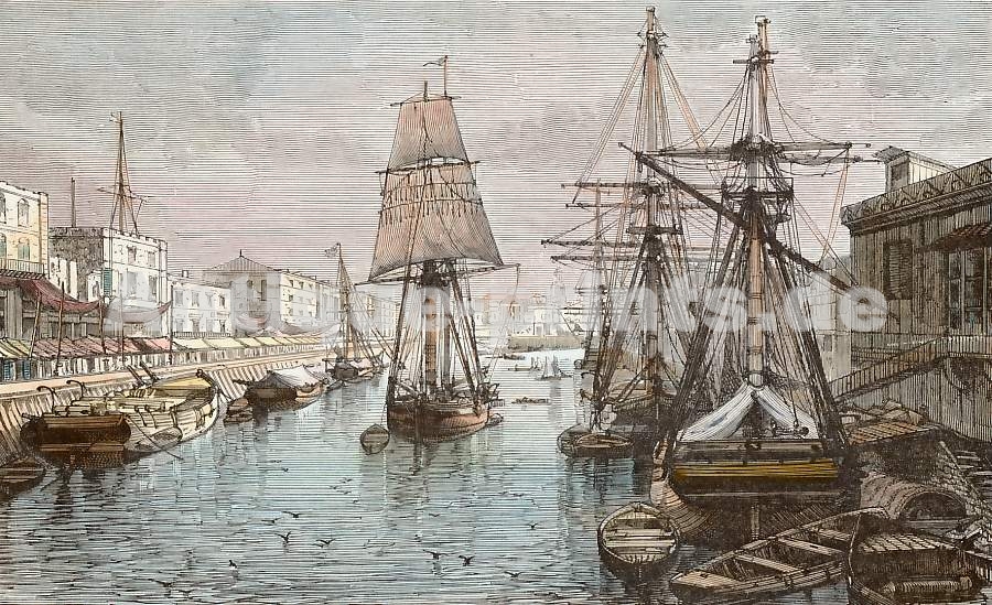 Sierra Leone & Libéria. Gravure sur cuivre. 1825. Légères rousseurs. Aquarellage d´époque. 9x6,5cm. Montée sous passe-partout.