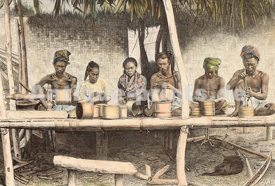 Mariana Islands. Original steel engraving drawn by Danvin, engraved by Cholet. 1836. Very good condition. Hand-coloured. 14x9cm. Matted.
