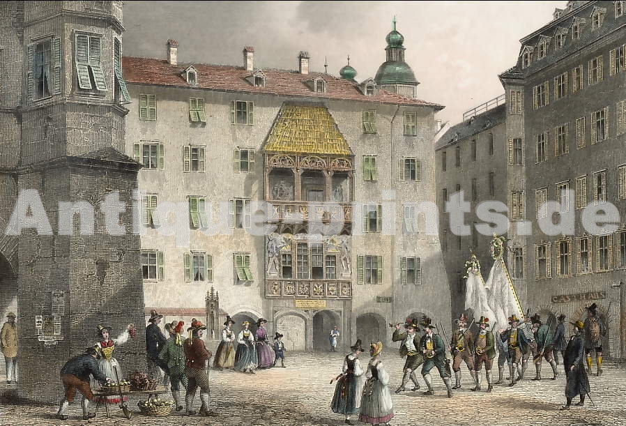 Original steel engraving. 1837. Very good condition. Hand-coloured. ca 9,5x9cm. Matted.